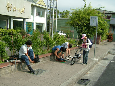 不過其實親水公園不太適合溜直排輪.裡面道路是5元大小鵝卵石.